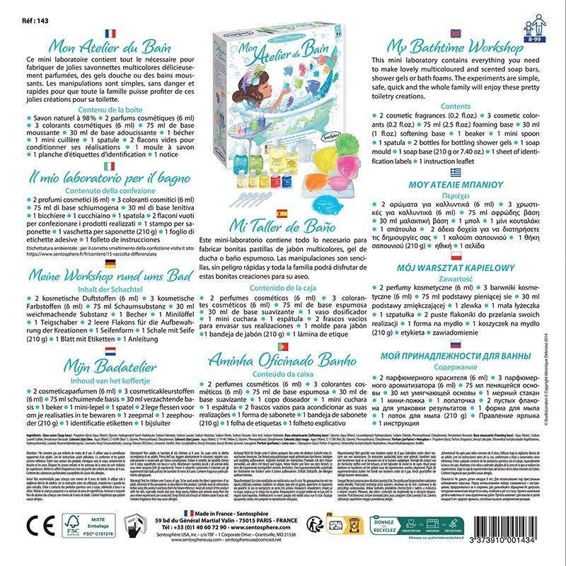 Un laboratoire complet de cosmétique pour réaliser de jolis savons et des bains moussants aux couleurs de lagons et aux senteurs fraîches et florales.