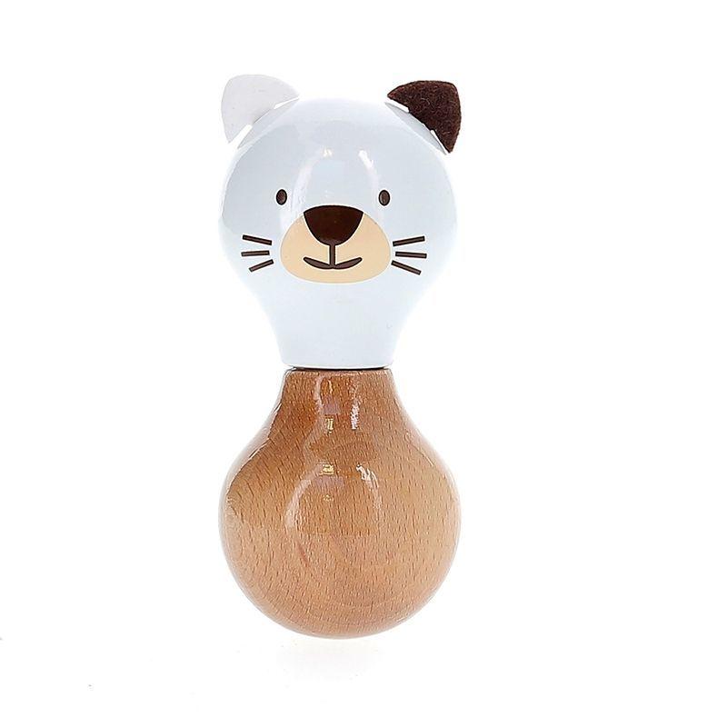 Décliné en voiture et en parapluie, ce hochet en bois laqué fait partie d’une collection d’animaux imaginés et fabriqués dans notre atelier du Jura en France.