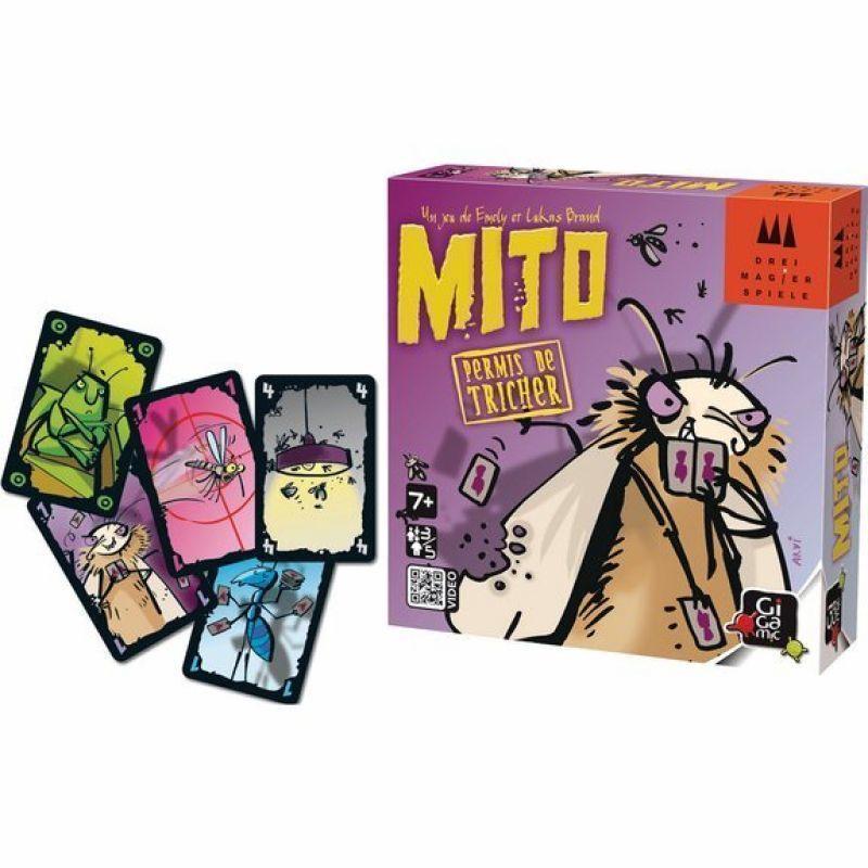 Pour se débarrasser au plus vite de ses cartes, tous les moyens sont bons, même… la triche ! Chacun son tour prend le rôle de la Gardienne Punaise qui veille au grain en surveillant les autres. Serez-vous honnête en respectant les règles ou allez-vous tricher ? Mettre une carte dans sa manche, en faire tomber sur ses genoux, tout est possible… à condition de ne pas se faire prendre ! Attention toutefois à rester attentif au jeu, car des cartes spéciales viennent régulièrement bousculer la partie. Mito est un jeu «mitique» et complètement dingo.